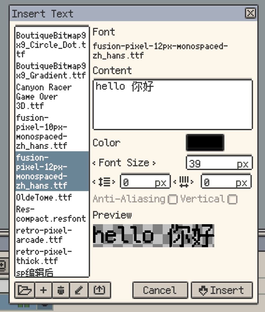 If you want to reuse your own pixel letterforms, icons, or HUD symbols, export a sprite as a Resprite Font.