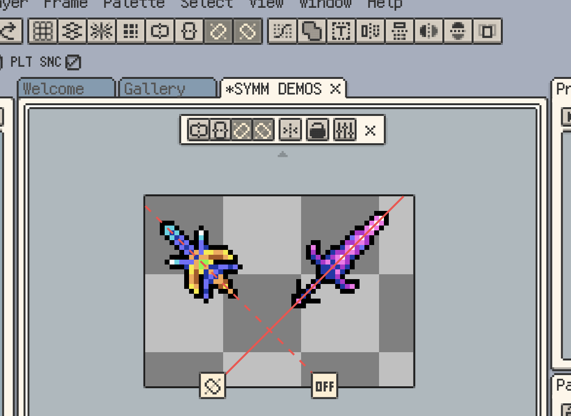 The two screenshots below show the current Symmetry Tool panel on iOS and desktop.
