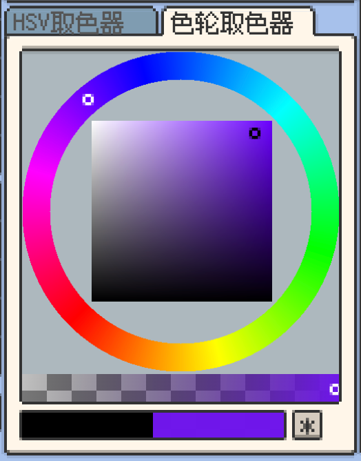 在 v1.28.1 起,取色器新增色轮取色器(Color Wheel Picker)布局,可在取色器布局中切换。