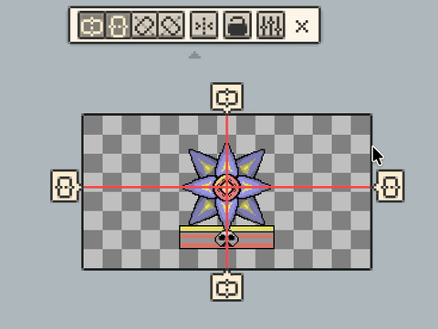 显示出来之后,它们会在画布边缘或画布内出现对应的把手与对称辅助线。